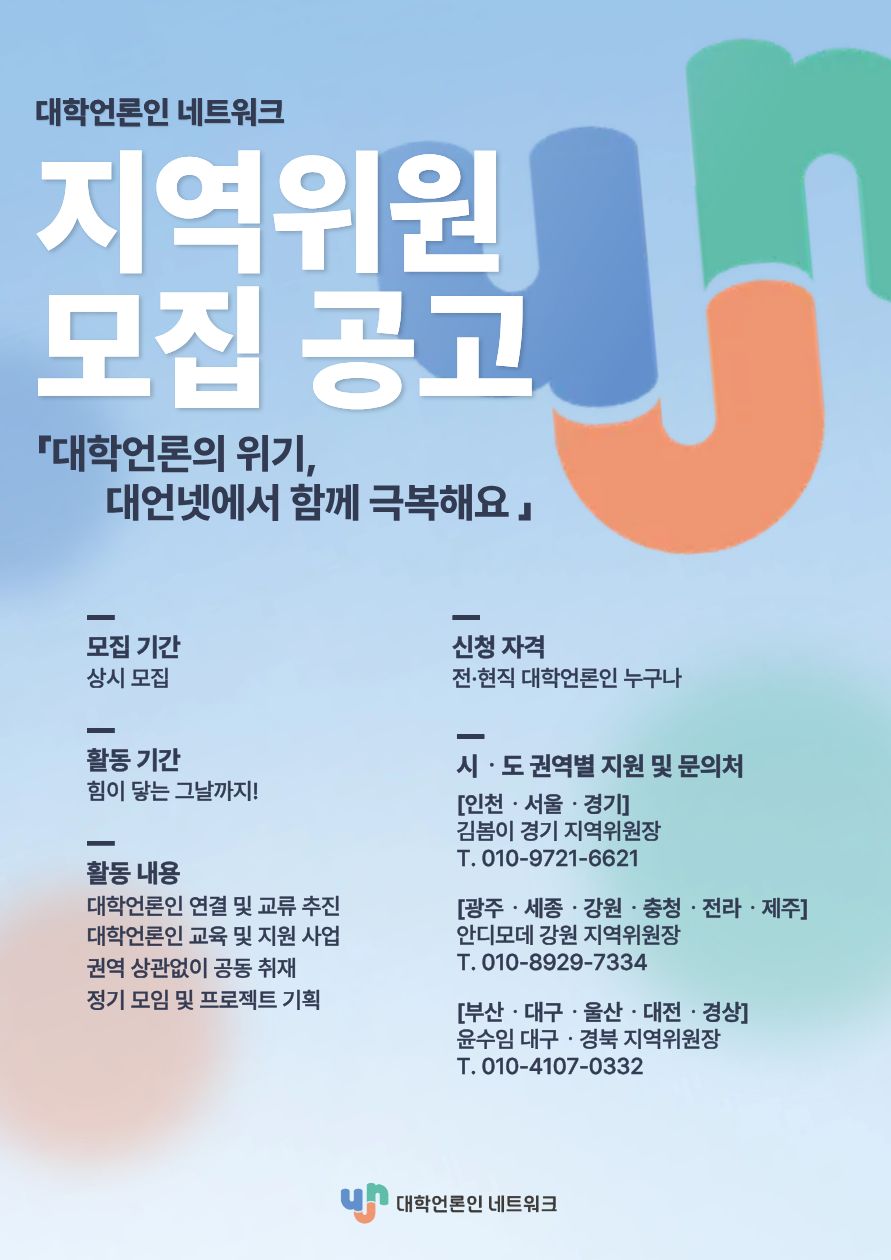 ‼️대학언론인 네트워크에서 지역위원을 모집합니다‼️